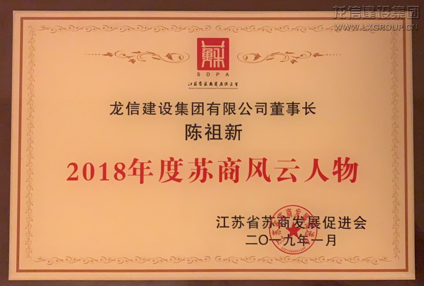 1月11日-12日,由江蘇省蘇商發展促進會主辦的“2019(第13屆)蘇商領袖年會”在南京隆重舉行。龍信集團董事長陳祖新被授予“2018年度蘇商風云人物”稱號。