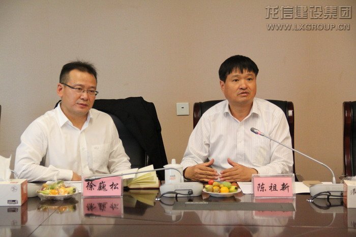 2015 年10月22日下午,中國進出口銀行江蘇省分行行長吳鋼、該公司業務一處、航運融資處長顧婷一行3人,為支持幫助龍信建設集團有限公司順應新常態,加快實施“一帶一路”偉大戰略,前來我公司出席融資洽談會。南通市商務局局長顧淑英女士、南通市商務局財務審計處處長顧海軍、海門市政府常務副市長成偉出席了座談會。集團公司董事長陳祖新、集團公司財務總監樊忠飛、海外公司總經理徐巍松等參加了會議。