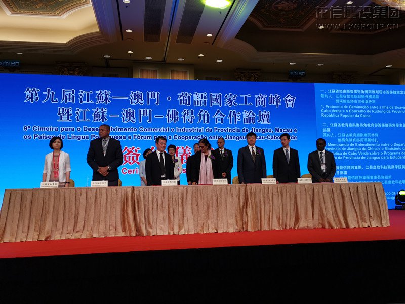 17日下午,第九屆江蘇-澳門·葡語國家工商峰會暨江蘇-澳門-佛得角合作論壇在威尼斯人酒店盛大舉行,陳祖新董事長發表《在佛得角建設項目經驗分享》的主旨演講,并在隨后的簽約環節與佛得角大學副校長卡多佐、江蘇農牧科技學院代表臧大存簽署了產學研三方合作項目協議書,合作開展農業領域的研究和應用,為佛得角和非洲的農業發展作出貢獻。